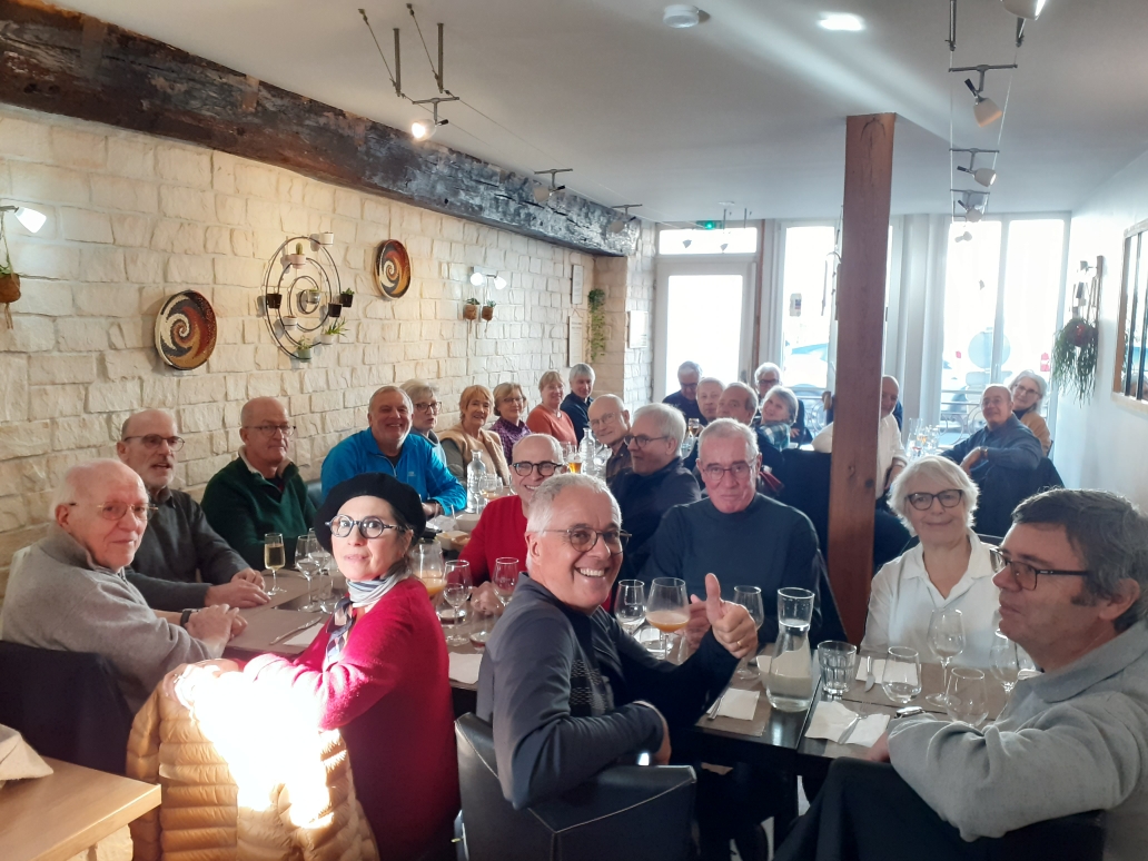 Après avoir parcouru 13,2 km et un dénivelé de 79 mètres (voici la trace : https://www.visugpx.com/Z1miZ0RMLe), les étirements nous remettent en forme pour aller affronter les agapes qui nous attendent au restaurant Le 42 à Saint-Arnoult où nous sommes rejoints par des anciens du groupe ainsi que par Jean qui va nous revenir en janvier.
